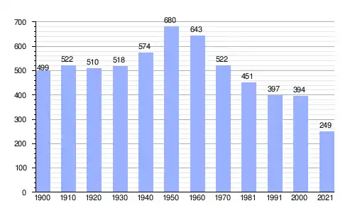 Gráfica de evolución demográfica de El Campo de Peñaranda entre 1900 y 2021 |