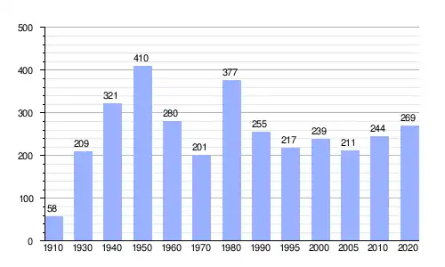 Gráfica de evolución demográfica de El Caracol entre 1910 y 2020 |