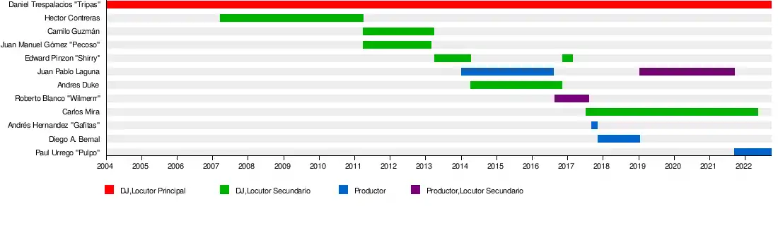 - Daniel Andrés Trespalacios Borda - "Tripas": Director del programa y locutor principal (2004-actual)