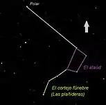 El cortejo fúnebre gira en torno al polo norte celeste en sentido antihorario, de tal manera, que el féretro encabeza la procesión y las plañideras le siguen como cortejo funerario.