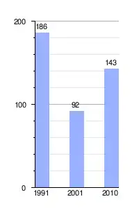Gráfica de evolución demográfica de El Cuadrado entre 1991 y 2010 |
