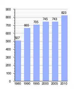 Gráfica de evolución demográfica de El Durazno entre 1980 y 2010 |