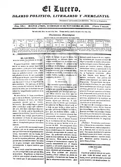 El Lucero, Diario político, literario y mercantil, mejor conocido como El Lucero, fue un periódico argentino del siglo XIX, editado durante los gobiernos de Lavalle, Viamonte, Rosas y Balcarce. El periódico se fundó en 1829 y cerró sus operaciones en 1833.[1]