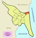 La ubicación de esta localidad en la misma frontera hace que esté dividida entre dos municipios: Pilar de la Horadada, de quién es la mayor parte, y San Pedro del Pinatar en la provincia de Murcia, a la cual pertenece el resto. Esta situación paradójica ha llevado al alcalde del municipio murciano a tomar medidas como intentar desplazar esta frontera de manera unilateral y sin previo aviso a los afectados.[1]