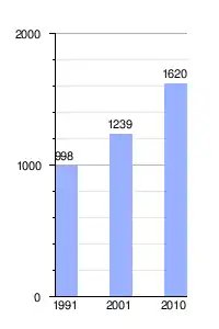 Gráfica de evolución demográfica de El Mojón entre 1991 y 2010 |