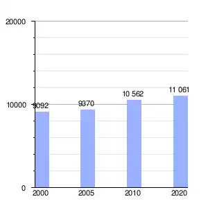 En 2020 el 49.1% de la población (5428 personas) eran hombres y el 50.9% (5633 personas) eran mujeres. El 63.7% de la población, (7045 personas), tenía edades comprendidas entre los 15 y los 64 años.[2]