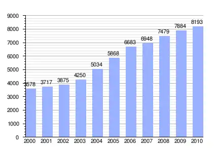Gráfica de evolución demográfica de El Parador de las Hortichuelas entre 2000 y 2010 |