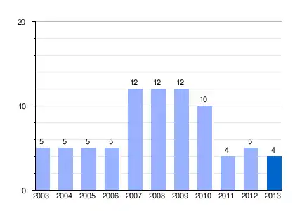 Gráfica de evolución demográfica de El Peñón entre 2003 y 2013 |