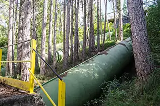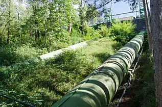 Cuando el canal llega al término de Conreu, salva 20 m de desnivel para alimentar la central eléctrica.