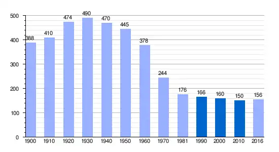 Población de hecho (1900-1981) según los censos de población del INE.      Población de derecho (1990-2010), población según el padrón municipal, datos del INE.