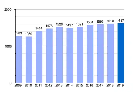Gráfica de evolución demográfica de El Romeral entre 2009 y 2019 |