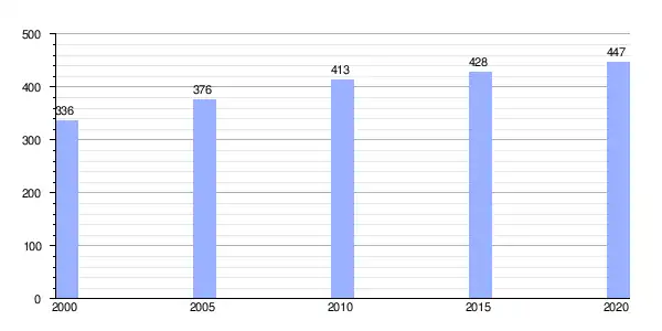 Gráfica de evolución demográfica de Muja entre 2000 y 2020 |
