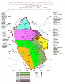 El municipio tiene una superficie de 659 km² con una población estimada por el Instituto Nacional de Estadística de Bolivia para el año 2012 de 49 652 habitantes y una densidad de 73,01 hab/km².