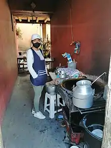 Junto con su hija, Erika Coyago, preparan sobre el tiesto decenas de tortillas que son degustadas por propios y extraños. Ellas se ubican diariamente en una vivienda cerca del parque central, diagonal a la iglesia matriz. Además, en las fiestas parroquiales y patronales, se asan cuyes. [3]
