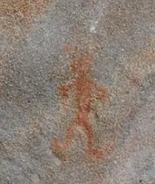 Es la figura en la cual en la parte superior salen unas líneas hacia arriba a manera de penacho. En la parte inferior cuenta con dos extremidades que en su extremo terminan a en forma de óvalos manera de pies. Una interpretación es un chamán bailando.