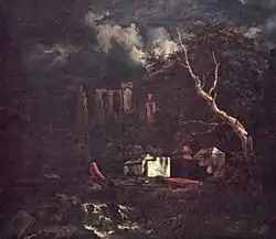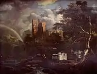 Ruysdael plasma estas sensaciones en muchas de sus obras, no solo con la representación, como en este caso de tumbas, a veces rotas, sino también árboles caídos y otras alusiones simbólicas.[2]