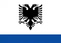 El águila bicéfala remonta a Gjergj Kastriot, considerado como el héroe nacional de Albania, un albanés convertido en General turco en el siglo XV bajo el nombre de Skanderbeg, quien más tarde se volvería hacia la fe cristiana y lucharía contra los turcos durante los años 1440. En sus combates usaba el sello del águila bizantina de dos cabezas, de ahí la imagen del animal en la actual bandera albanesa.