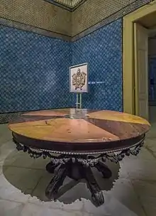 - Trono de marfil de cetáceos (1745) y la pintura que Mustafá Khaznadar a la izquierda