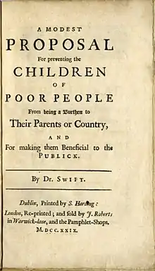 - Jonathan Swift, A Modest Proposal, «Pamphlet de Jonathan Swift sur wikisource». Consultado el 30 de julio de 2015.