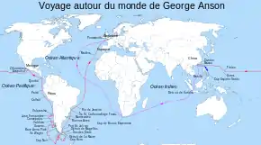 Dicho esto, se burla suavemente de la precisión del «libro de viajes» más famoso de la época, Viaje de Anson alrededor del mundo, publicado en .1748,[lower-alpha 15] y se apresura a llamar al resto «aburrido hasta la muerte»".