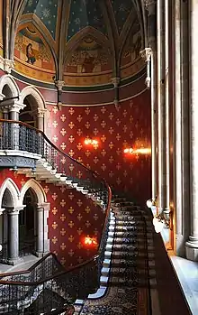 El interior de Midland Grand Hotel también fue usado para grabar tomas, notablemente las tomas en la imponente y majestuosa escalera principal.