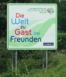 El lema fue utilizado en diversas señaléticas establecidas en las principales vías de Alemania. El Ministerio de Transportes de dicho país junto a la FIFA instaló 55 letreros de bienvenida en los diversos pasos fronterizos del país (con el lema en alemán y en el idioma del país vecino), 51 pancartas dentro del país con el lema en idioma alemán y 19 en idioma inglés.