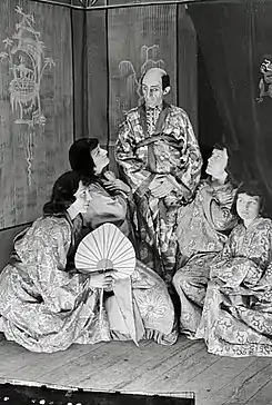 Oficiales, mandarines, amigos, novias, sirvientes, doncellas (Coro, ballet, extras) | |||