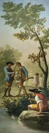 El pescador de caña es un cuadro de la primera serie de cartones para tapices, ideada por Francisco de Goya para el comedor de los príncipes de Asturias en el Monasterio de El Escorial. Funde el estilo cinegético con la pesca, las dos mayores diversiones del príncipe Carlos de Borbón.