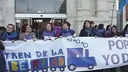El tren de la libertad es un movimiento social feminista en defensa de los derechos sexuales y reproductivos de las mujeres y contra la reforma de la Ley del aborto en España que culminó el 1 de febrero de 2014 con una manifestación en Madrid pidiendo la retirada del anteproyecto de ley del aborto presentado por el ministro de Justicia Alberto Ruíz Gallardón y reclamando su dimisión, además de defender la ley del aborto vigente del 2010.[1] La protesta fue una iniciativa que surgió en Asturias, a partir de la Tertulia Feminista Les Comadres y la organización Mujeres por la Igualdad de Barredos. A ella se sumaron organizaciones de mujeres, organizaciones feministas y entidades implicadas en la lucha por los derechos sexuales y reproductivos de España,[2]también apoyado por partidos de la oposición y sindicatos.[3][4] La manifestación partió del Paseo del Prado y recorrió el camino hacia el Congreso de Diputados donde un grupo de representantes feministas entregó el manifiesto "Porque yo decido" escrito por la doctora en filosofía Alicia Miyares[5] con las reivindicaciones de la movilización al registro del Congreso a nombre del Presidente de Gobierno, al del Congreso, a la ministra de Sanidad, Ana Mato, y al ministro de Justicia, Alberto Ruiz Gallardón.[6]