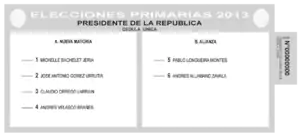 75. UP (26 de septiembre de 2013). «Servel ratifica validez y registro de votos marcados con “AC”». El Mostrador. Consultado el 11 de noviembre de 2013.