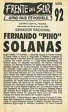 Pino Solanas | Frente del Sur | 137.955 | 7,47 | 4/54 | |