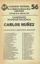Carlos Núñez | Partido Vecinal de la Ciudad de Buenos Aires | 11.192 | 0,61 | ||