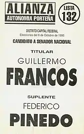 Guillermo Francos | Alianza Autonomía Porteña Ver partidos de la alianza: