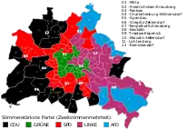 De los 78 mandatos directos, el SPD obtuvo 28, la CDU 21, Die Linke 12, Los Verdes 12 y la AfD 5.[8]