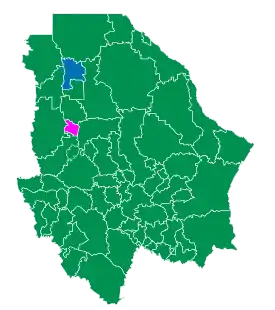 - 16 Diputados al Congreso del Estado. 14 electos por mayoría relativa en cada uno de los distritos electorales y dos electos por el principio de representación proporcional mediante un sistema de lista.
