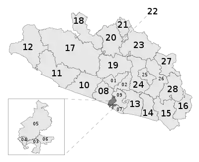 Distrito | Cabecera | Municipios | Mapa | Distrito | Cabecera | Municipios |