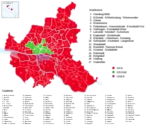 - SPD trotz drohender deutlicher Verluste klar die Nummer eins in Hamburg, heute.de.