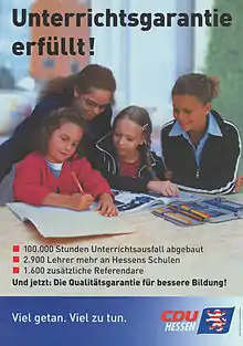 Roland Koch se mantuvo en el cargo de primer ministro en un gobierno en mayoría de la CDU, al haber obtenido dicho partido la mayoría absoluta de escaños. El FDP, que había sido su socio de coalición en el gobierno anterior, ya no era necesario para la CDU como consecuencia y se fue a la oposición.