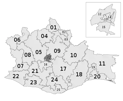 Para la elección de diputados de mayoría relativa del Congreso del Estado de Oaxaca, la entidad se divide en 25 distritos electorales.[6]