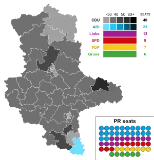 La Unión Demócrata Cristiana (CDU) ganó un inesperadamente fuerte 37,1% de los votos, un aumento de 7,4 puntos porcentuales. La opositora Alternativa para Alemania (AfD) terminó con un 20,8%, un descenso de 3,4 puntos porcentuales. Tanto Die Linke como el SPD sufrieron sus peores resultados en el estado, registrando un 11,0% y un 8,2% respectivamente. El Partido Democrático Libre (FDP), que por poco no había ingresado al Parlamento Regional en 2016, obtuvo el 6,4% de los votos y 7 escaños. Los Verdes terminaron con un inesperadamente bajo 5.9%, solo una ligera mejora con respecto a su resultado anterior.[2][3]