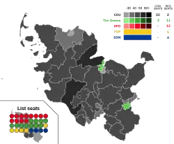 El SPD había liderado una coalición con los Verdes y SSW desde 2012, pero este gobierno perdió la mayoría en las elecciones. Posteriormente, la CDU formó una coalición con los Verdes y el FDP, y Daniel Günther se convirtió en ministro-presidente.