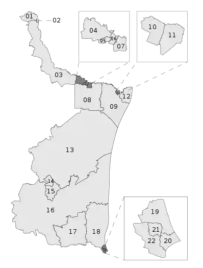 Para la elección de diputados de mayoría relativa del Congreso del Estado de Tamaulipas, la entidad se divide en 22 distritos electorales.[8]