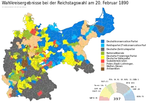Las elecciones parlamentarias de Alemania de 1890 se llevaron a cabo el 20 de febrero de 1890.[1] El Partido de Centro recuperó su posición como el partido más grande del Reichstag, al ganar 107 de los 397 escaños, mientras que el Partido Nacional Liberal, antes el partido más grande, se redujo a 38 escaños. A pesar de recibir más votos, el Partido Socialdemócrata obtuvo sólo 35 escaños.[2] La participación electoral fue del 71,6%.[3]