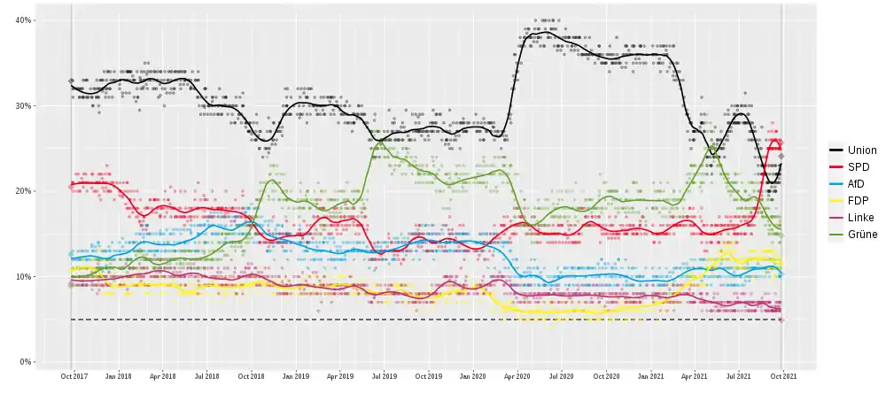 - «Sonntagsfrage – Weitere Wahlumfragen zur Bundestagswahl». Wahlrecht.de (en alemán). Consultado el 26 de septiembre de 2021.