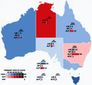 Partido Laborista Australiano | 3.904.138 | 39.44 | -6.39 | 78 | -8 | |
