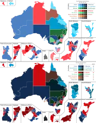 Las elecciones en Australia utilizan un sistema completo preferente donde los asientos se obtienen por medio de "un voto, un valor" para cada miembro de la Cámara de Representantes y un sistema de "voto único transferible opcional-preferencial" para la representación proporcional en el Senado. El voto es obligatorio, por convención del sistema Westminster, pero sujeto a las limitaciones constitucionales. La decisión sobre el tipo de elección y su fecha es del Primer Ministro, que asesora al Gobernador General para establecer el proceso en marcha disolviendo ambas cámaras y la emisión de órdenes judiciales para la elección.[3]