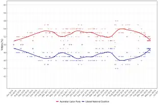 El Gobierno de Coalición Nacional / Liberal, encabezado por el primer ministro Scott Morrison, ganó su tercer mandato consecutivo de tres años al derrotar al opositor Partido Laborista Australiano, encabezado por el líder de la oposición, Bill Shorten. La Coalición obtuvo una mayoría con 77 escaños, los laboristas terminaron con 68, mientras que los seis escaños restantes fueron ganados por los Verdes Australianos, la Alianza del Centro el Partido Australiano de Katter y tres independientes.