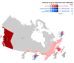 Liberal | Edward Blake (extraoficial) | 111 | 62 | 95 | +53.2% | 110,556 | 34.72% | +12.05pp | |