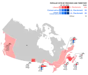 Liberal | Alexander MacKenzie | 140 | 95 | 129 | +35.8% | 128,455 | 39.49% | +4.77pp | |