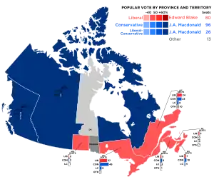 Los conservadores y los liberal-conservadores del primer ministro sir John A. Macdonald conservaron el poder, derrotando al Partido Liberal de Edward Blake.